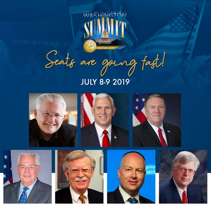 CIA Director Mike Pompeo, Vice President Mike Pence, and National Security Advisor John Bolton. CUFI’s leader,
